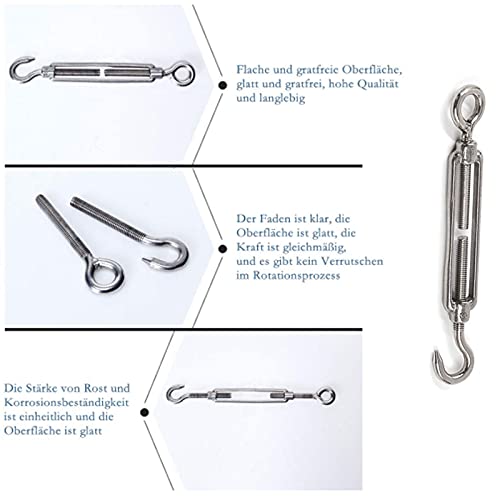 Occhiello del gancio del tenditore della fune Vite di tensione del tenditore a vite Tenditore del gancio in acciaio inossidabile 304 Gancio M4 in acciaio inossidabile 304 per tendere corde e cavi 6Pcs