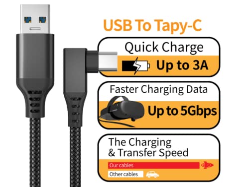 Occulist Quest 2 cavo di collegamento, 3 m, da USB 3.0A a C, cavo Oculus Quest 2 Link Cable 5 Gbps ad alta velocità di trasferimento e ricarica, per Oculus Quest VR Headset e Quest to a Gaming