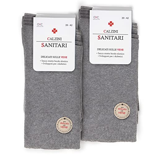 Occulto 10 PAIA CALZE UOMO senza ELSATICO senza CUCITURA, CALZINI SANITARI per DIABETICI 10 Paia | Grigio 43-46