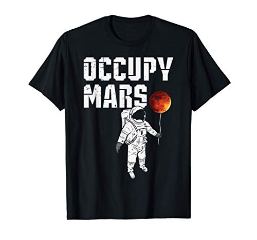 Occupy Mars Balloon Astronaut Funny Outer Space Planet Gift Maglietta