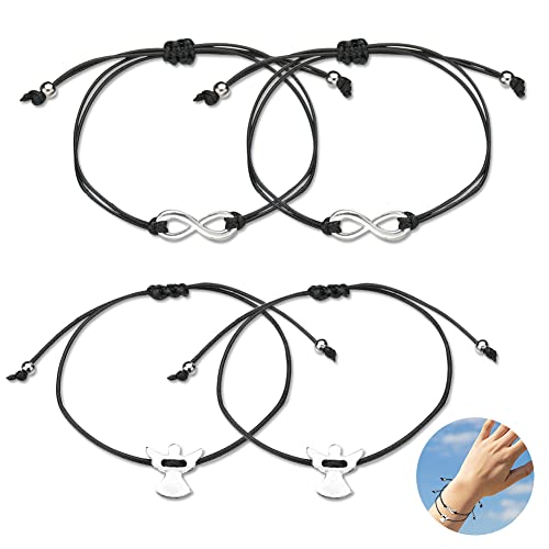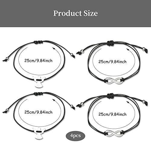 OCDSLYGB 4 pcs Braccialetto Angelo,Bracciale Personalizzato in Corda Intrecciata Fatto A Mano,Braccialetto Doppio Amore Bracciale Coppia,Fatto A Mano,Braccialetto Regolabili per Fidanzato Fidanzata