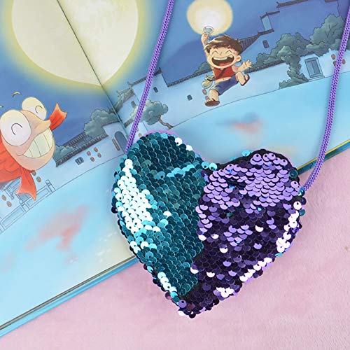 Oce180anYLV Bambini Ragazza Mini Borsa A Tracolla Doppio Colore Paillettes Forma Cuore Borsa A Tracolla Moneta Piccola Borsa Bianco+Argento