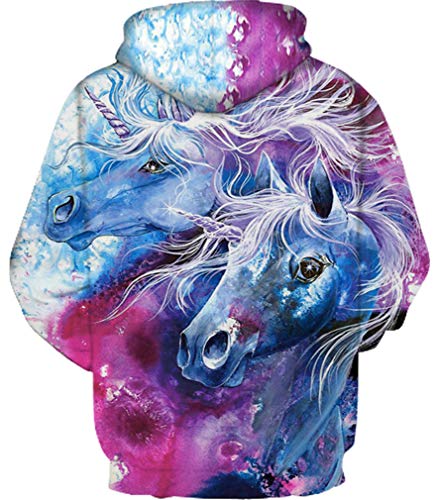 Ocean Plus Uomo Impronta Colorata a Maniche Lunghe Felpe con Cappuccio Lupo Tigre Hoodie Casual Felpa (L/XL (Torace: 114-134CM), Due unicorni)