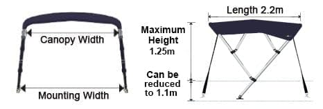 Bimini Top 4 bow con vano portaoggetti integrato. Spessore doppia parete 25mm. Struttura in alluminio