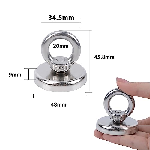 OCEUMAOA Magnete da Pesca Calamite Potenti 90kg Forza Magnete Potente Neodimio Super Magneti Fishing con Anelli,per Industria e Scienza 48mm 1Pezzi