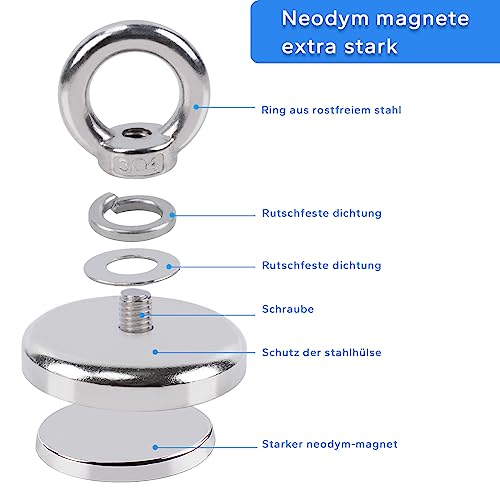 ► Prestazioni Di Alta Qualità: i potenti magneti al neodimio sono 3 volte più resistenti di altri prodotti economici della stessa dimensione e sono ricoperti da uno strato protettivo, che rende i magneti resistenti alla ruggine, alla corrosione e infrangibili. L'anello di sollevamento in metallo è realizzato in acciaio inossidabile 304 di alta qualità, che è molto resistente e prolunga la durata del magnete.