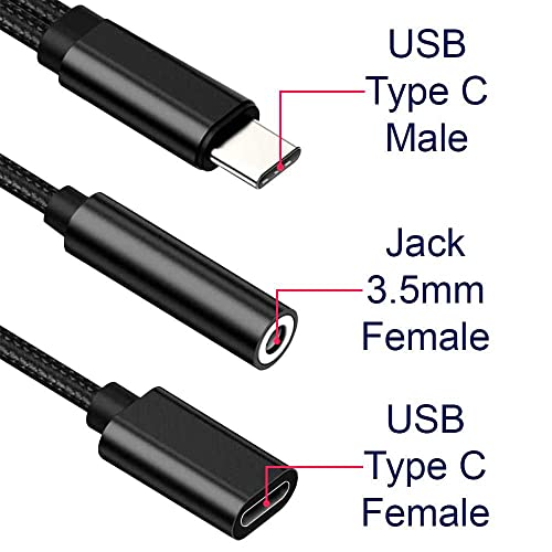 OcioDual Cavo da USB Tipo C a Mini Jack 3.5mm e Ricarica M/F-F Nero Cable Adattatore Connettore Convertitore Carica TRRS OMPT