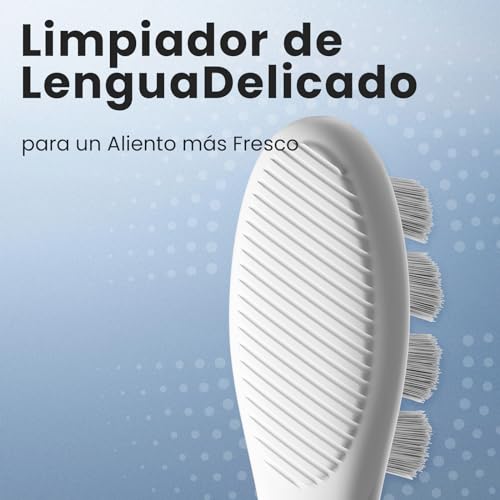 【DESIGN DELICATO】Il design della testina a forma di W con punta in setola diamantata offre una migliore aderenza ai denti, maggiore protezione e massimo comfort. E il delicato puliscilingua favorisce un alito più fresco