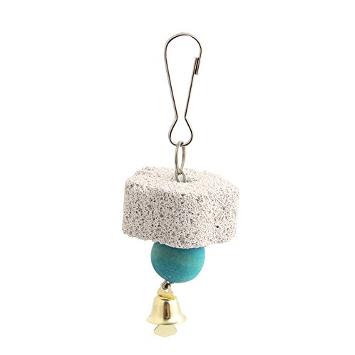 Ocobudbxw Gabbia per Uccelli, Gabbia per Uccelli Macinazione Uccelli Becco Pietra di Calcio con Campana Blocco di Lava Minerale Taglio Denti Giocattoli da Masticare per Cincillà Bunny Pappagallo