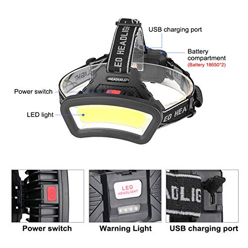 Ocobudbxw Lampade Frontali COB da Lavoro Luminose Torcia da Testa a LED Impermeabile Leggera Ricarica USB