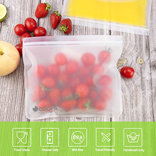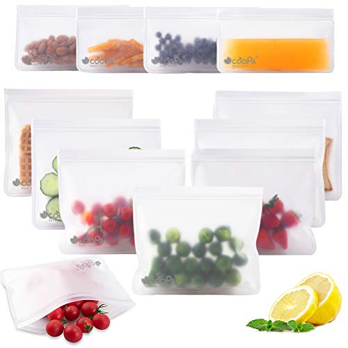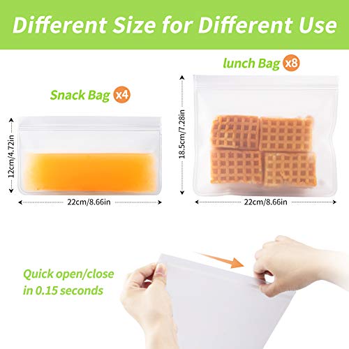 OCOOPA Sacchetti riutilizzabili per alimenti, extra spessi, a prova di perdite, biodegradabili, in PEVA di grado FDA, per panini e snack, in plastica 12 Pack(8 Sandwich+4 Snack Bags)