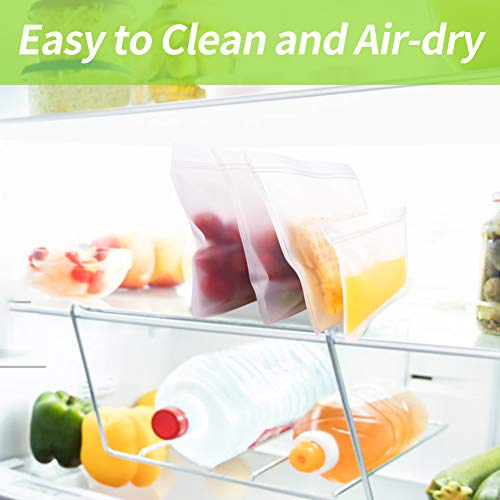 Facili da pulire e durevoli: questi sacchetti in polietilene vinil acetato sono facili da pulire, ma non sono adatti per lavastoviglie, che possono distruggere le cerniere. Puoi lasciare la borsa sotto il rubinetto, lavarla, lasciarla asciugare, poi sembrerà nuovo! Il materiale PEVA è antigelo, ma la temperatura massima che può sopportare è 80°C/ 176° F. I sacchetti in PEVA non inquinano l'ambiente anche se vengono scartati. Questa borsa riutilizzabile può sostituire fino a 500 sacchetti monouso. Sarai l'eroe della protezione dell'ambiente!