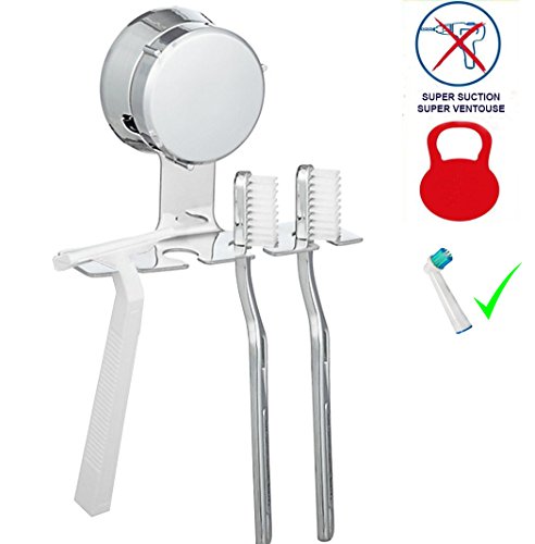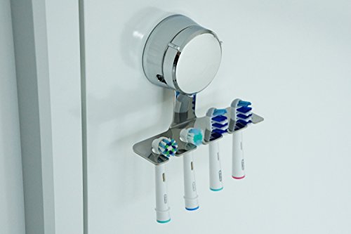 OCTOPODIS - Portaspazzolino Acciaio Inox Cromo, Titolare dei rasoi Ventosa, Porta-spazzolini Antibatterico Spazzolino Titolari con Ventosa, Elettrico Titolare spazzolino Testa, OralB, Sonicare.