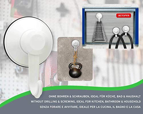 Octopus 4X WINHOOOK caricabile Fino a 3,6 kg, Gancio a Parete, Gancio a Ventosa con Ventose, Senza Foratura e Viti, Girevole a 360 Gradi, Appendiabiti, Supporto di aspirazione per Il Fissaggio.