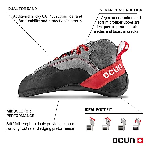 Ocun Jett Crack - Scarpe da Arrampicata, Grigio/Rosso, 36.5 EU