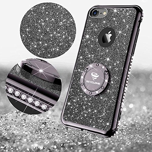 OCYCLONE Brillantini Cover per iPhone 6 Plus/iPhone 6S Plus Custodia Glitter con Supporto per Anello e Cordino, TPU Cover Protettiva Antiurto Morbida per iPhone iPhone 6 Plus / 6S Plus, Nero