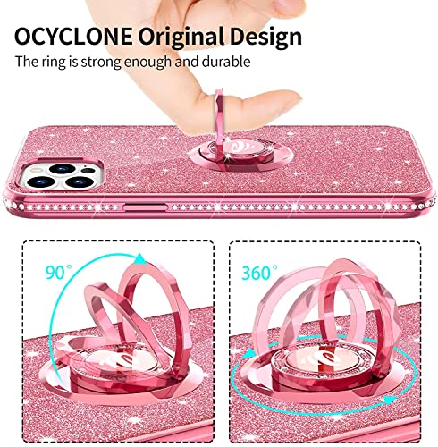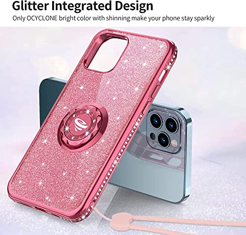 OCYCLONE Cover Glitter per iPhone 12/iPhone 12 Pro 6,1", Custodia Protettiva con Anello e Cordino, TPU Brillantini Custodia Antiurto per Donna, iPhone 12 Pro Sparkle Bling Cover - Oro Rosa