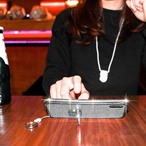 OCYCLONE Cover per Samsung Galaxy Note 10 Glitter Brillantini Strass Argento, Kickstand e Neck Strap Bling Silicone Diamante Brillante Cristallo Lucciante Custodia per Galaxy Note 10-6,3 Pollici