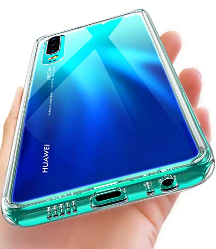 OCYCLONE Custodia per Huawei P30, Cristallo [Vetro temperato Posteriore ] + TPU Corner Cushion Bumper Slim AntiGraffio Cover per Huawei P30 6,1" - Trasparente
