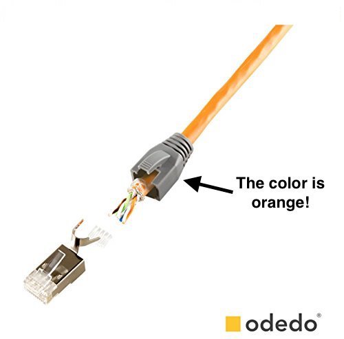 Odedo confezione da 10 connettori Crimp di colore arancione, Cat. 7, 7A, 6A per posa di cavo di rete Ethernet fino a 8 mm, fino a 10 Gigabit, con anima rigida o flessibile, connettori RJ45
