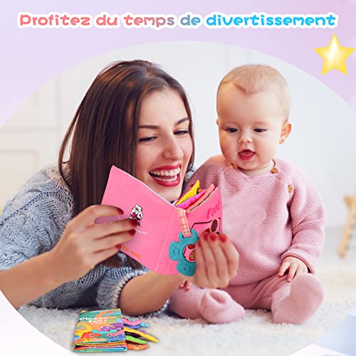 Design interessante a libro tattile per neonati: 11,5 x 11,5 cm, libro di stoffa bambino di 21 x 12 cm, tessuti testurizzati e colori vivaci aiutano a coltivare la percezione sensoriale dei bambini, pieno di elementi interattivi, l'attenzione del bambino sarà più lunga, molto adatta ai bambini piccoli.