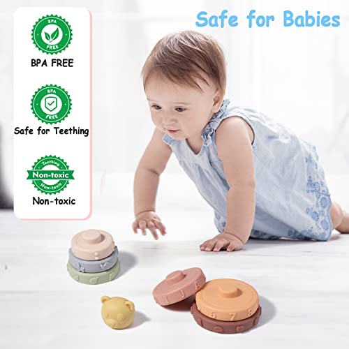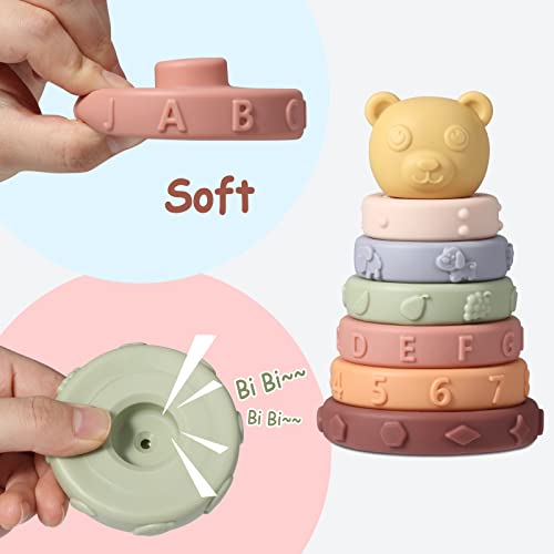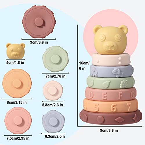 【Materiale di Sicurezza】 L'anello giocattolo per bambini impilabile è realizzato con materiali di alta qualità, certificato di sicurezza privo di BPA, sicuro e non tossico, morbido e facile da masticare.