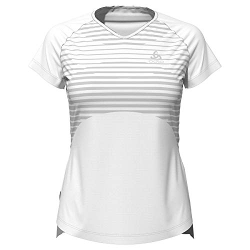Odlo Ceramicool Baselay Crew Neck T-Shirt, Maglietta da Donna, Bianco-Placed Print SS20, S