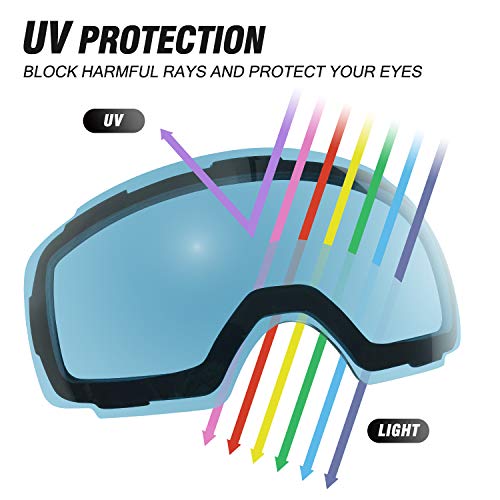 Odoland Lente Azzurro VLT 60% Intercambiabili per Occhiali Sci - Antiappannamento e Protezione UV400, Lente Blu per Maschera Sci, Lente di Maschera da Sci per i Giorni Notte