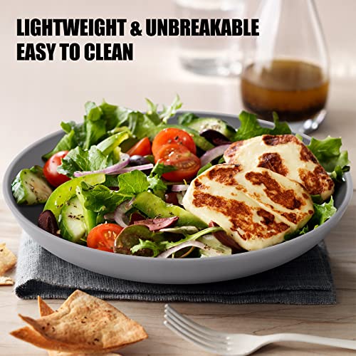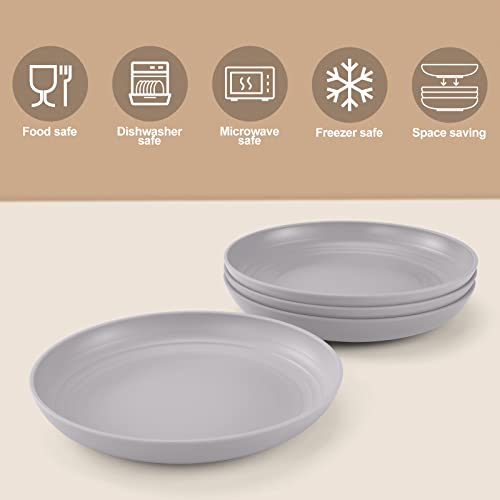 Odoland Set Piatti Plastica 23 cm 4 Pezzi, Piatti Profondi per Cena Infrangibile Leggero, Piatto di Servizio per Insalata, Pasta, Feste, Ufficio, Microonde e Lavabili in Lavastoviglie, Grigio