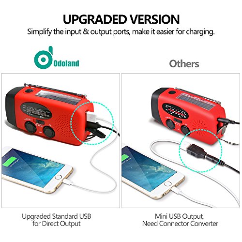 Odoland Radio Energia Solare di Emergenza, Radio Meteorologica NOAA per Emergenza Domestica e da Campeggio con AM/FM, Radio Torcia Dinamo, Allarme SOS - Radiolina Portatile e Ricaricabile