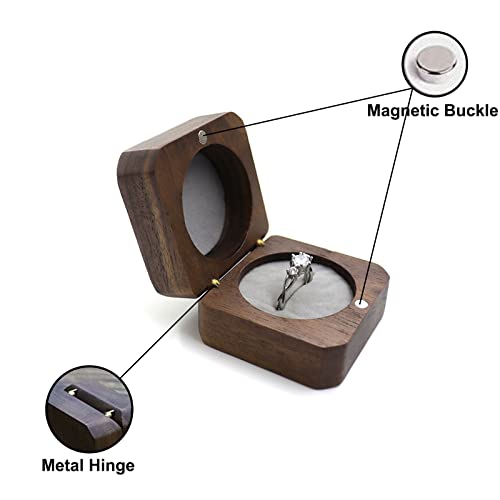ODOOKON Scatola per Anello in Legno con Cuscino, Scatola per Anelli Usato per Fidanzamento, Matrimonio, Scatola Regalo Scatola di gioielli Coppia scatola Orecchino Custodia Noce Anello Ring Box (C)