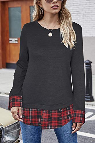 Occasioni: Odosalii - Maglia da donna a quadretti, perfetta per tutti i giorni, appuntamenti, ufficio, casual, vacanze, sport e altre occasioni. Adatta anche per primavera, autunno e inverno, questa calda maglietta ti dà un'esperienza piacevole