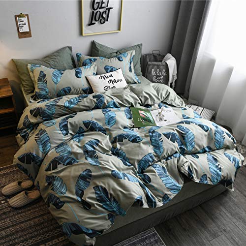 Odot Set Biancheria da Letto Matrimoniale 3 Pezzi, Tropicale Set Copripiumino Set Copripiumini Matrimoniali in Microfibra con Federe Chiusura a Zip Parure da Letto (180x220cm,Foglie Blu)