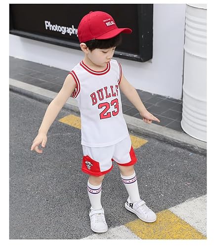 Odziezet Completini da Bambini Infantile Abitini Pallacanestro Estiva Coordinati 2 Pezzi Canotte + Pantalocini 2-3 Anni, Bianco