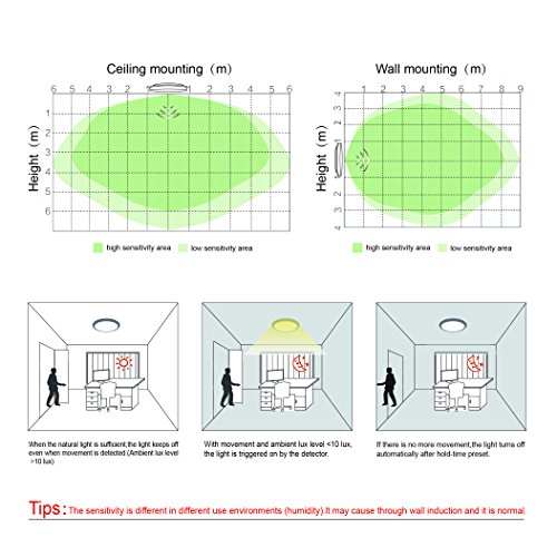 【IP44 impermeabile】Il medesimo allacciamento della lampada e del sensore garantisce un montaggio semplice. Ideale per corridoi, pianerottoli, vani scala e bagni, Inoltre, la lampada la potete montare sul soffitto o sul muro, o su entrambi.