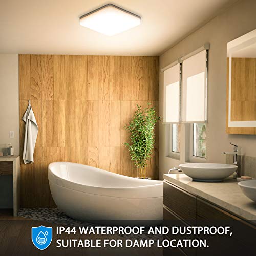 Oeegoo 15W IP44 Sensore radar Lampada per interni incorporato angolo di rilevamento di 180° raggio d'azione da 4 a 12 m LED Plafoniera 1300LM- Equivalente 75W Quadrata (4000K)