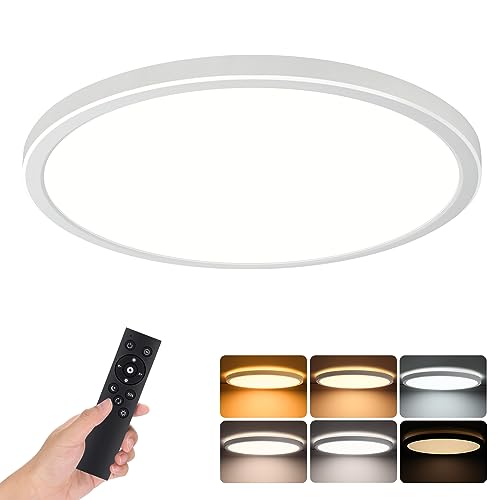 Oeegoo LED Plafoniera dimmerabile con telecomando, 24W lampada da soffitto ultra sottile con retroilluminazione dimmerabile, IP40 impermeabile, per bagno, camera da letto, 3000K-6500K, φ30 x 2,5/cm
