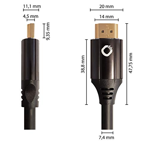 Cavo HDMI Premium in rame OFC (rame privo di ossigeno) con 32 canali audio digitali e canale di ritorno ARC per 5. 1 DTS HD e Dolby True HD, Dolby Atmos. Tripla schermatura. Ottima trasmissione di immagini, audio e dati fino a 18 GBit/s e 600 MHz.