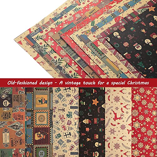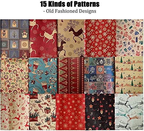 【Alta qualità】 Carta Kraft spessa, resistente e resistente, stile vecchio stile con 15 diversi motivi: un tocco vintage per un Natale speciale