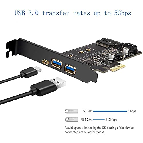 Oewnvmd Scheda PCI-E a USB 3.0 PCI Express Inclusa 1 USB C e 2 Porte USB A, Scheda Adattatore M.2 NVME a PCIe 3.0 con Staffa