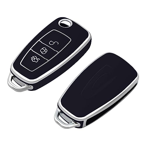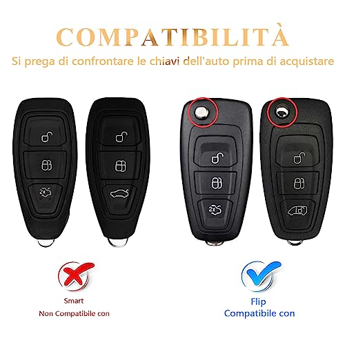 【Compatibilità】Copri chiave auto compatibile con Ford Mondeo Fusion Fiesta Kuga Ecosport Focus Escort Galaxy Transit Ranger Tourneo Custom Bantam Escape ST RS Ka B-Max C-Max S-Max MK3. (Si prega di confrontare la chiavi auto con l'immagine prima dell'acquisto! E la chiave auto non è inclusa)