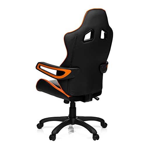 HJH Office 621838 Sedia da gaming/Sedia da ufficio GAME PRO l similpelle nero arancione, con braccioli fissi, ideale per giocatori, sedile da corsa, supporto laterale, meccanismo oscillante