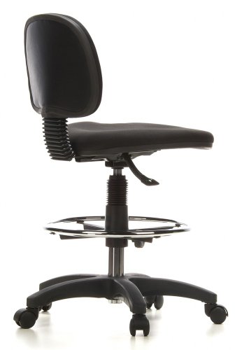Hjh OFFICE 648000 Sgabello da Lavoro Top Work 08 Tessuto Nero, Senza braccioli, Robusto, con poggiapiedi Regolabile, Schienale e Sedile Regolabile in Altezza, Sedia da Lavoro, ergonomica