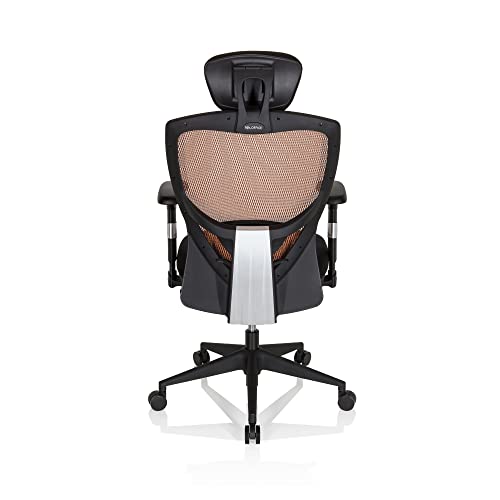 HJH Office 657120 Sedia da Ufficio VENUS BASE Tessuto/Rete, Poltrona Girevole ergonomica, Braccioli regolabili in altezza, Arancione/Nero