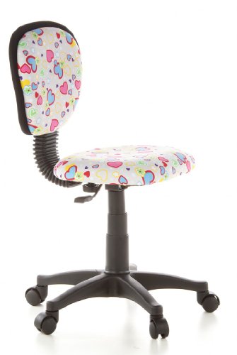 HJH Office 670170 Sedia da ufficio per bambini KIDDY TOP tessuto rosa con cuoricini, regolabile in altezza, ergonomica, imbottita, resistente