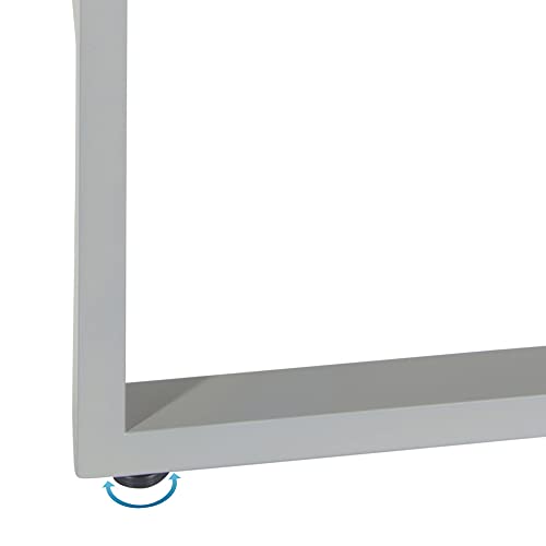 La generosa superficie di lavoro è composta da un pannello di truciolato con rivestimento in resina melamminica;