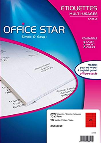 OFFICE STAR OS43474R - Confezione da 2400 etichette autoadesive multiuso, personalizzabili e stampabili, formato 70 x 37 mm