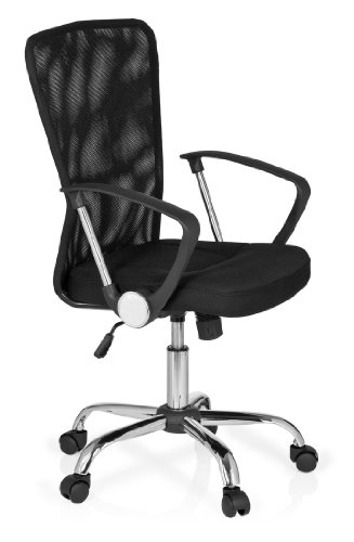 HJH Office Net Star Sedia da Ufficio/Poltrona Presidenziale, Tessuto Rete, 100% Poliestere, Nero Cromo