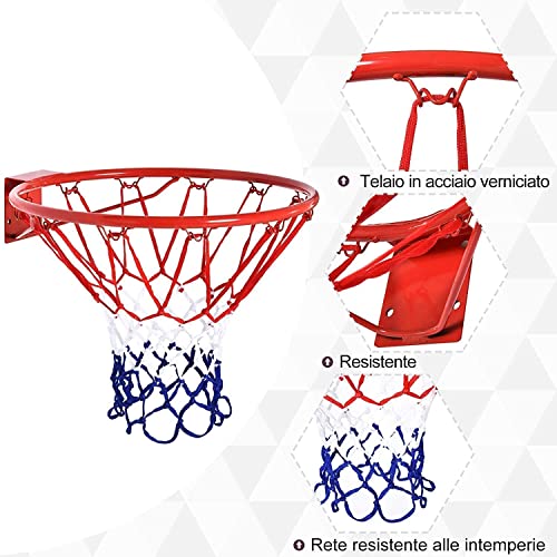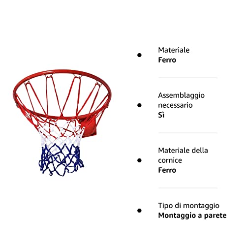 Official product VANNISPORT Canestro Basket Pallacanestro da Muro in Ferro regolamentare -Adulti Bambini con Rete in Nylon per Esterno e Interno Diametro 46 cm