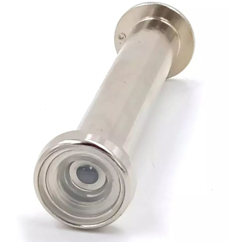Spioncino Ottico diametro 12, con lunghezza variabile da 70 mm a 130 mm, finitura Nichelato Misure: Diametro canotto ( foro su porta ) 12 mm Diametro esterno porta 19 mm Diametro interno porta 19 mm Finitura: Nichelato